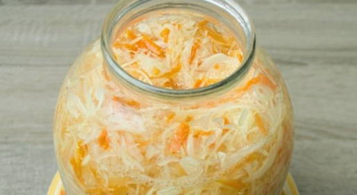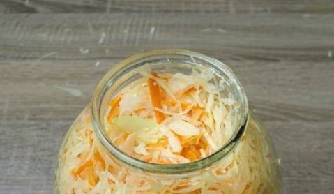 De meest knapperige zuurkool wordt gemaakt met de toevoeging van wortelen. Bereid een sappig huisgemaakt product in een pot van 3 liter. Serveer een traktatie voor een familielunch of -diner.