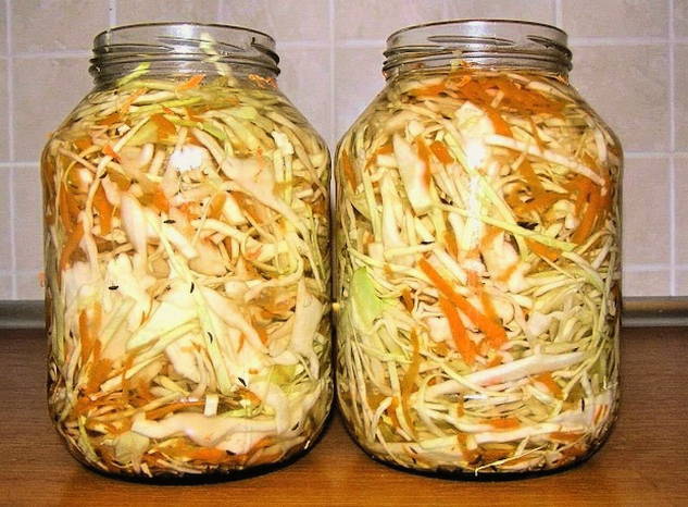 Een handige manier om zuurkool thuis te bereiden, is in potten van drie liter. Probeer 6 verschillende recepten met een stapsgewijs proces. De afgewerkte traktatie is sappig en knapperig, waardoor het een geweldig koud voorgerecht op tafel is. Ook kan het product worden gebruikt voor het maken van soepen en andere gerechten.