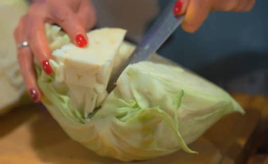 - Verwijder de bovenste beschadigde bladeren van de koolkop. Maal de groente op een handige manier.