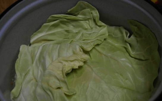 - Bedek de blanco met een koolblad.