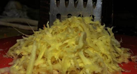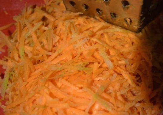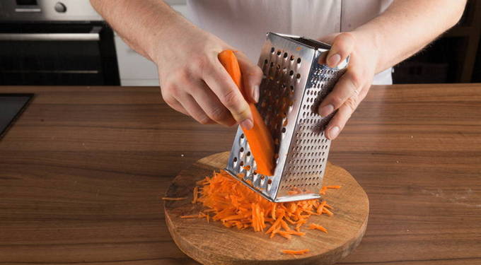 - Wrijf de wortel door een grove rasp.