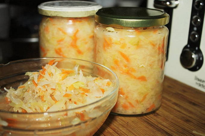 Heerlijke zuurkool met wortel voor de winter in potjes