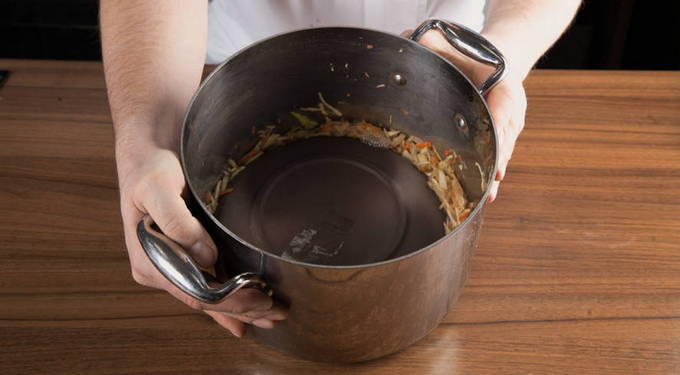 - Het is handig om het in een pan in een bassin te plaatsen, omdat er tijdens het fermentatieproces veel vloeistof vrijkomt.