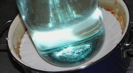 - Na een tijdje kan het werkstuk worden overgebracht naar een pot van drie liter, afgesloten met een deksel en op een koele plaats worden bewaard.