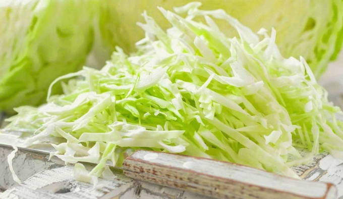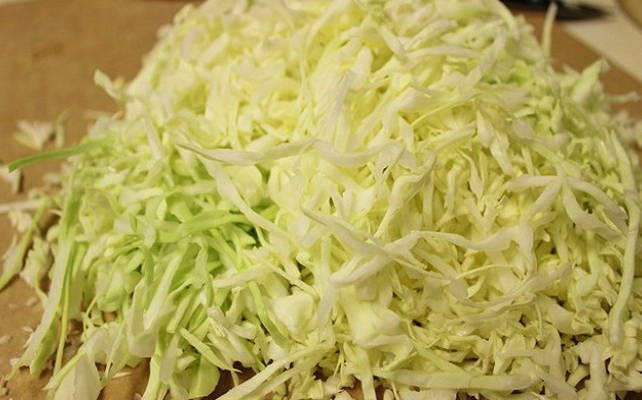 Aangezien het hoofdingrediënt kool is, zul je er de meeste tijd aan moeten besteden. Verwijder de bovenste bladeren van de koolkoppen, verwijder de stronken en snij dan pas de kool in kleine reepjes.