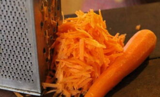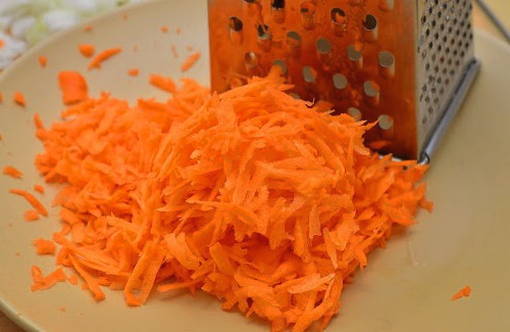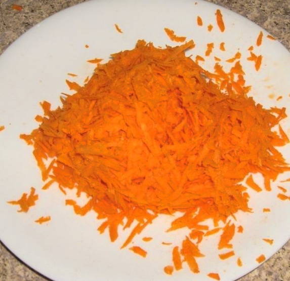 - Schil en rasp de wortelen op een grove rasp of een rasp bedoeld voor het koken van wortelen in het Koreaans.
