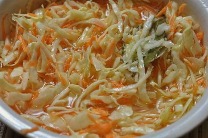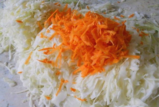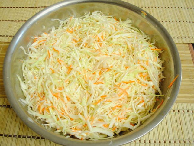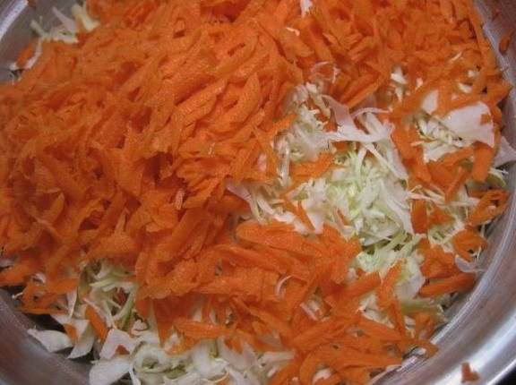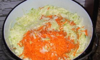 - Combineer groenten, zout en voeg karwijzaad toe. We verpletteren de plantaardige massa niet veel.