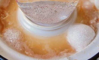 - We mengen alles in een diepe kom en voegen tegelijkertijd zout, kristalsuiker, laurierblaadjes en peper toe.