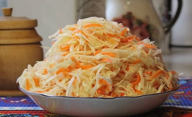 Dit recept kan gerust klassiek en universeel worden genoemd. Zuurkool zonder wortel zal immers niet zo zoet, helder en smakelijk zijn.