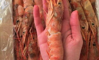 - Ontdooi de langoustines, maak voorzichtig inkepingen in de rug en verwijder de slokdarm met de darmen. Ze zullen bitter smaken, dus zorg ervoor dat je ze verwijdert.
