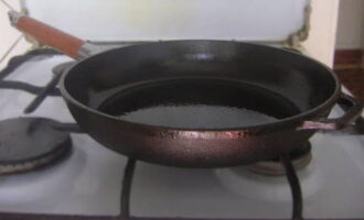 Verhit eventuele plantaardige olie in een gietijzeren koekenpan, hoewel het de voorkeur heeft om olijfolie te gebruiken.