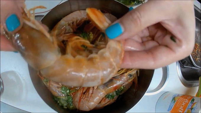 - Hoe ingevroren ongeschilde langoustines in een koekenpan koken?