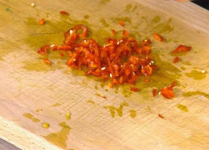 - Verwijder de zaadjes van chilipepers, die overmatig bitter zijn, en hak ze heel fijn.