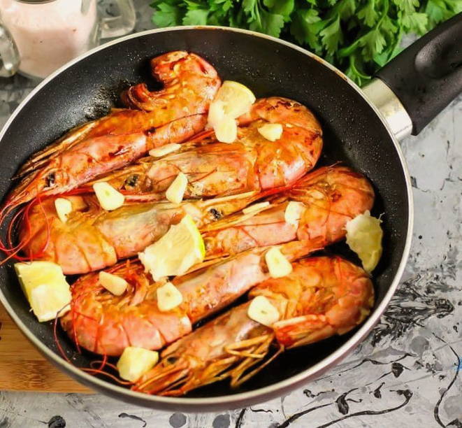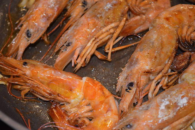 Hoe ingevroren ongeschilde langoustines in een koekenpan koken?