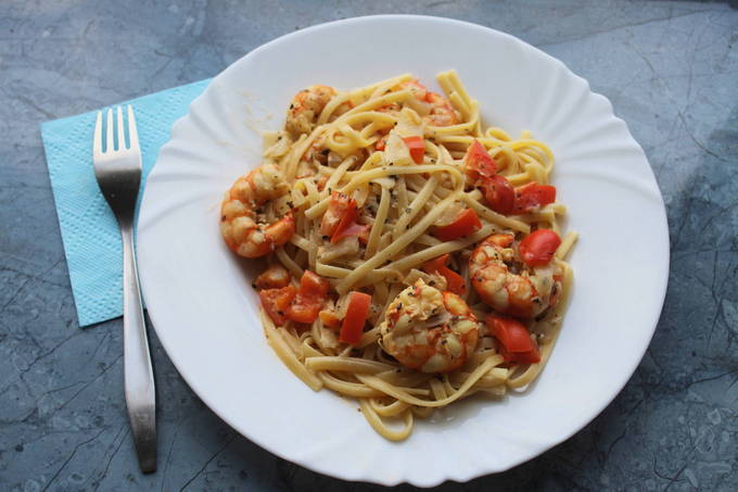 Heerlijke pasta met langoustines wordt aangevuld met een delicate romige saus die de spaghetti doordringt en verzadigt met smaak. Het belangrijkste is om bij het serveren niet te vergeten Parmezaanse kaas toe te voegen, waarvan de pittige smaak zal overgaan naar Italië.
