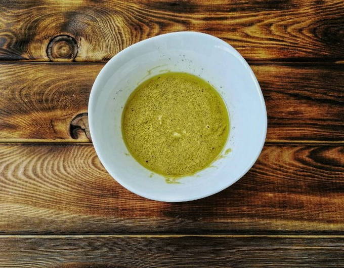 - Meng mosterd, oestersaus, boter, limoensap, zout, peper en gehakte knoflookteentjes in een gemeenschappelijke kom. Roer de massa goed door.