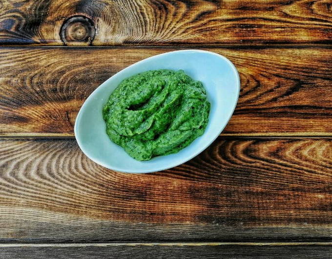 - Maal en meng de avocado, peterselie, knoflook, mosterd, limoensap, olie, zout en peper tot een homogene pap is verkregen.