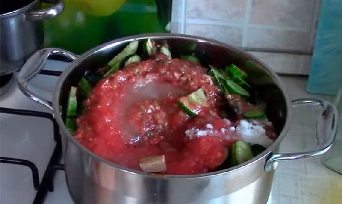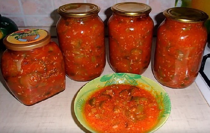 - Komkommerlecho voor de winter met tomatenpuree