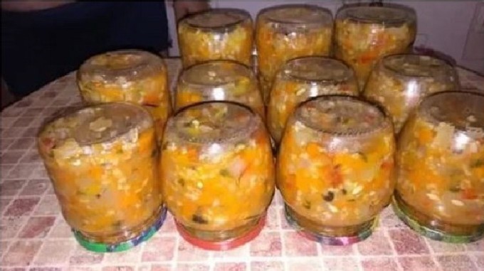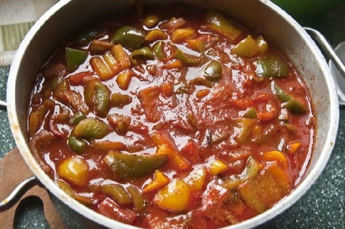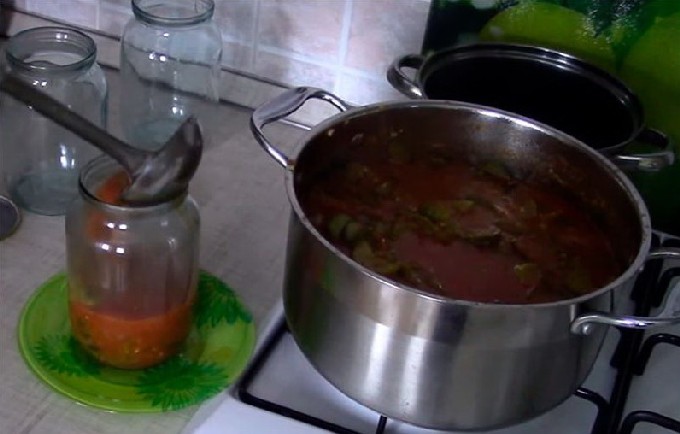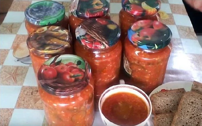 - Doe de hete lecho in steriele potten en draai vast met gekookte deksels. Koel de potten ondersteboven en onder een warme deken en breng ze over naar de opslag.