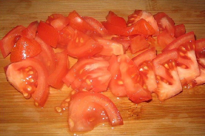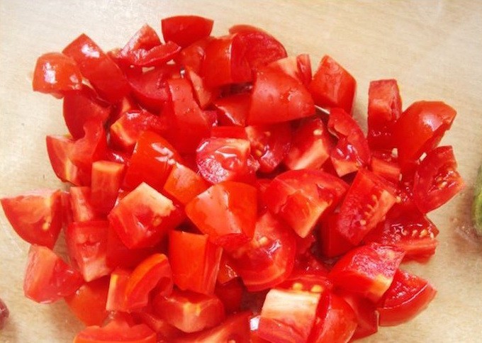- Spoel eerst alle groenten die nodig zijn voor lecho goed af. Snijd de tomaten in middelgrote blokjes.