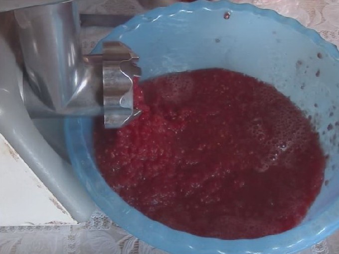 - Draai verse tomaten in een vleesmolen met een fijn rooster.