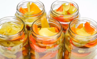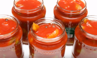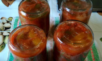 - We leggen de geurige lecho in steriele potten, draaien de deksels vast, bewaren een dag ondersteboven onder een warme handdoek om langzaam af te koelen.