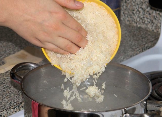 - Kook de rijst helemaal of tot hij half gaar is, laat hem uit het water lopen.