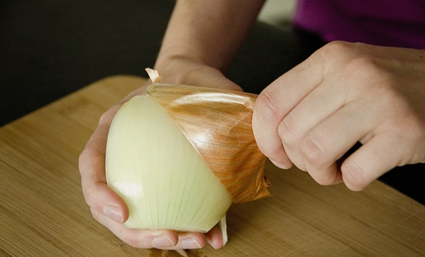 - Snijd de ui in kleine blokjes.