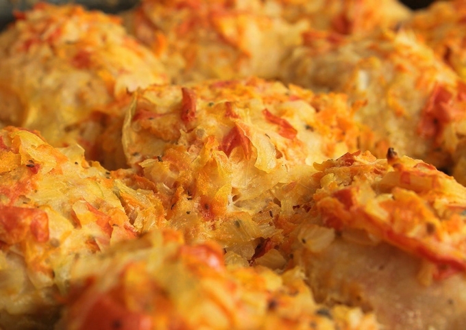 - Leg de helft van het gehakt met groenten op de kool.