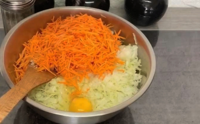 - Laat de kool afkoelen en knijp het overtollige vocht eruit.