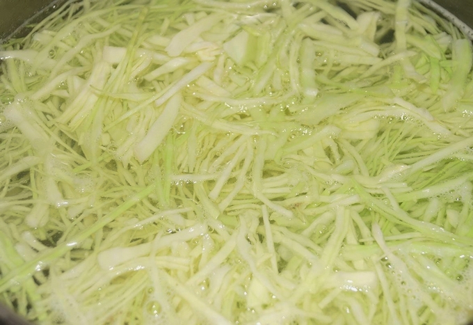 - Kook de fijngesneden witte kool in gezouten water ongeveer 7 minuten.