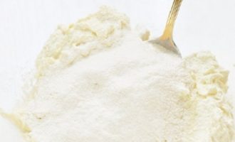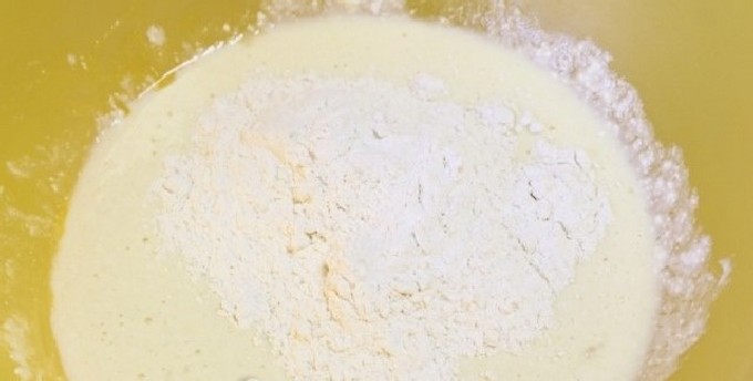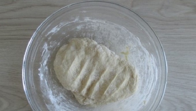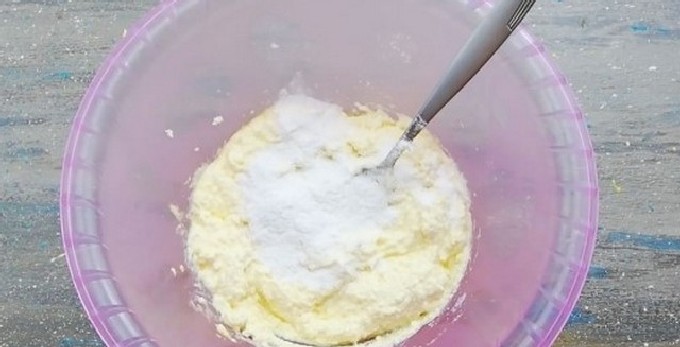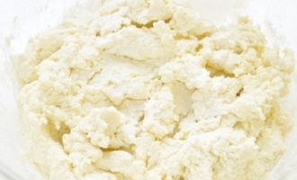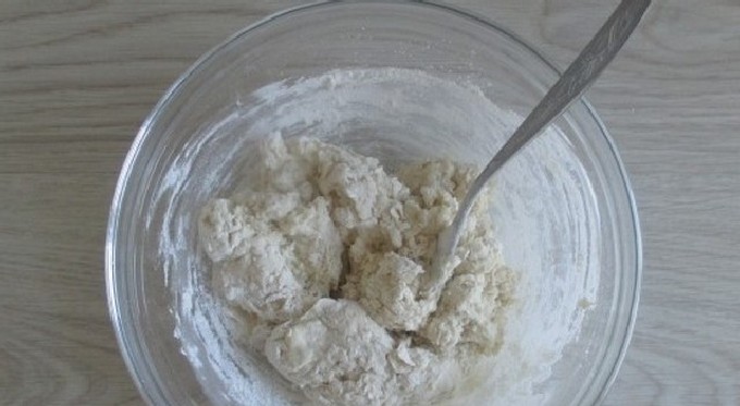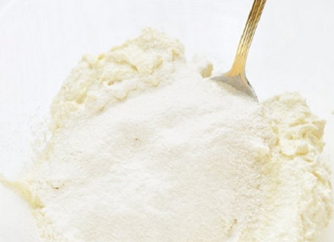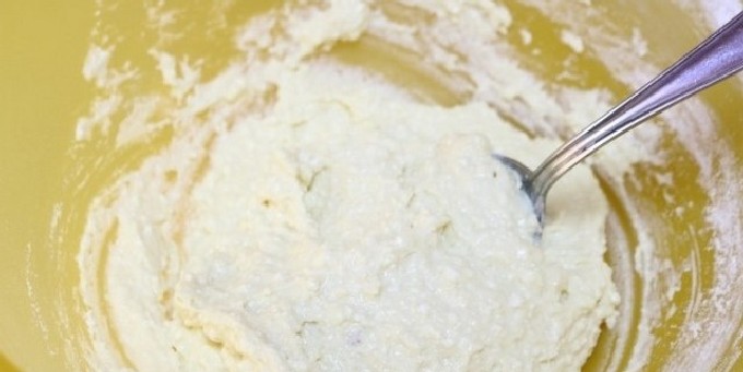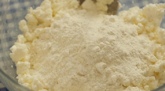 - Klop het deeg glad en voeg bloem toe (het kan iets meer of minder zijn dan aangegeven in het recept, aangezien de kwark altijd een andere consistentie heeft).