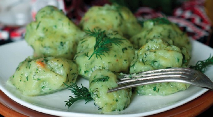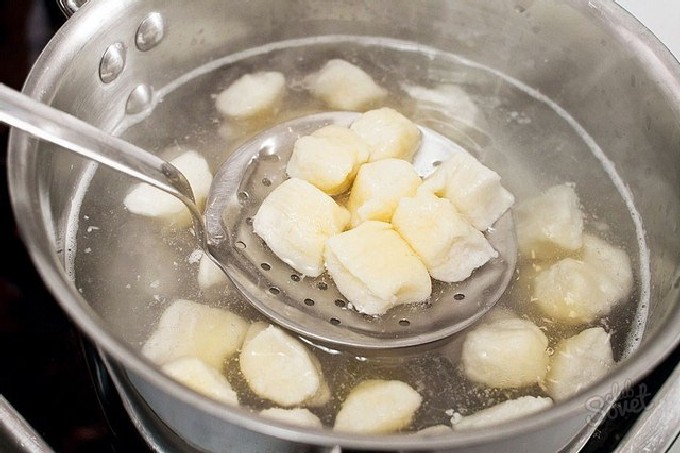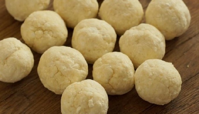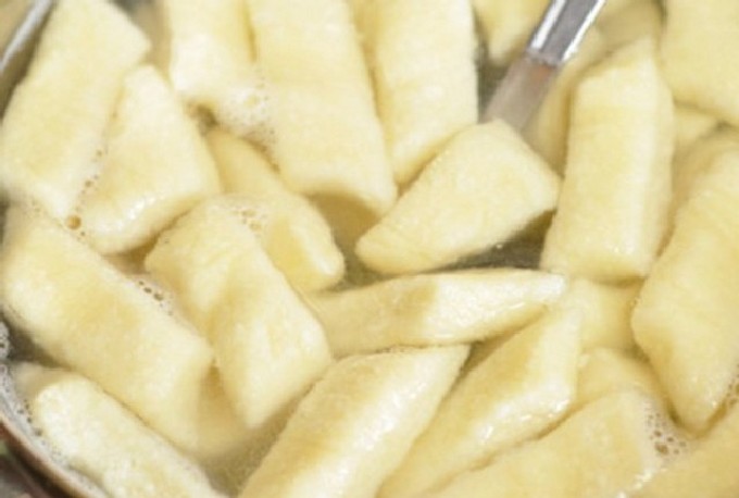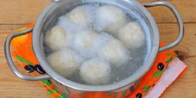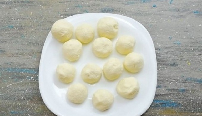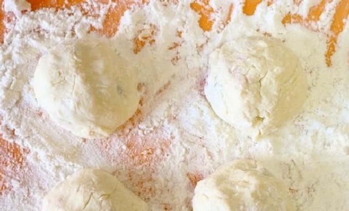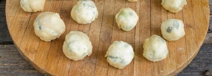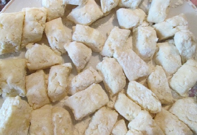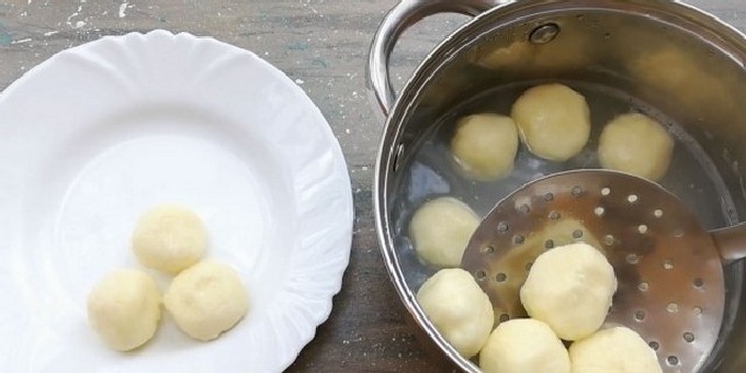 - Rol het deeg in een laag en vorm knoedels van elke vorm (de foto toont knoedels in de vorm van ronde ballen, maar je kunt ze ook maken in de vorm van traditionele ruiten).