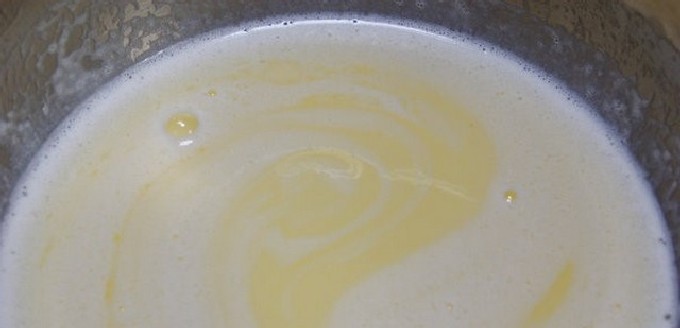 - Om een deeg voor knoedels te maken, schudt u melk met ei en zout, voegt u bloem toe en roert u alles goed door.