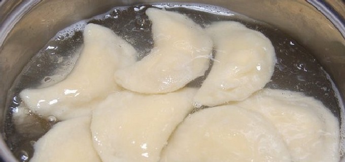 - Kook de dumplings in kokend water tot ze gaar zijn en eet ze op, besprenkel met gesmolten boter, zure room of besprenkel met iets naar wens.