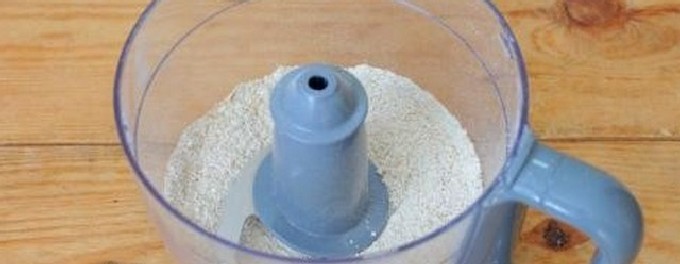 - Maal de havermout tot bloem met een blender, keukenmachine of koffiemolen.