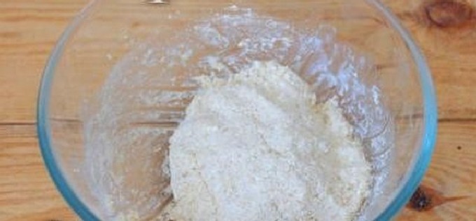 - Voeg havermeel in porties toe, kneed een glad en dik deeg dat niet aan je handen plakt.