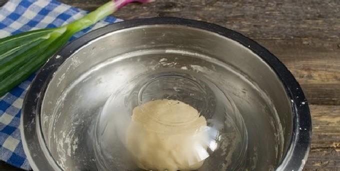 - Zeef tarwebloem van de hoogste kwaliteit, roer met plantaardige olie en water.Kneed op een snijplank een soepel, elastisch deeg.