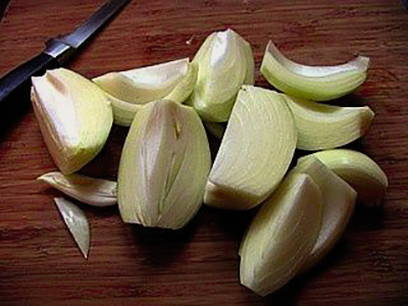 - Schil en hak de ui fijn, doe deze in een kom, voeg azijn en water toe en laat 15 minuten marineren. Was de koriander en hak fijn.