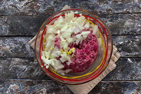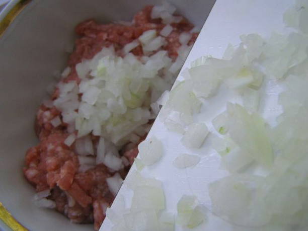 - Voeg de gesnipperde ui toe aan het gehakt.