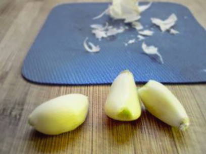 - Voeg gehakte knoflook en adjika toe aan het gehakt, meng opnieuw goed. Leg het gehakt 30-40 minuten in de koelkast.