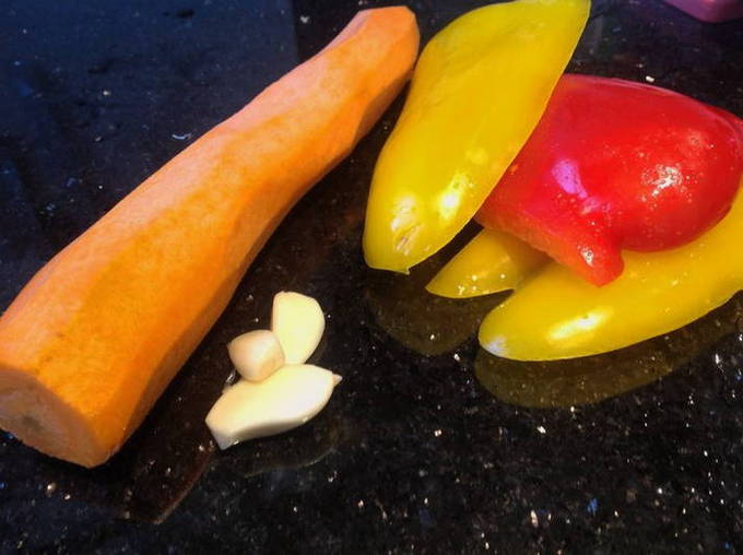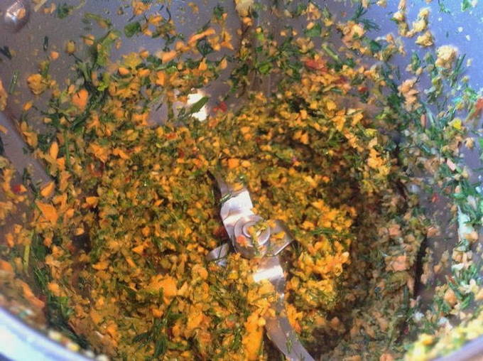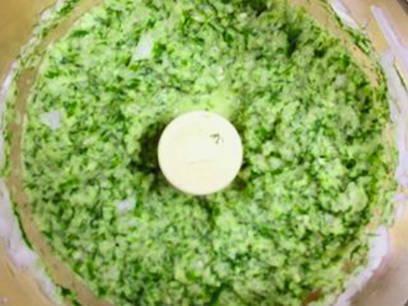 - Doe de kruiden, bleekselderij en groenten in een blender en hak ze fijn.