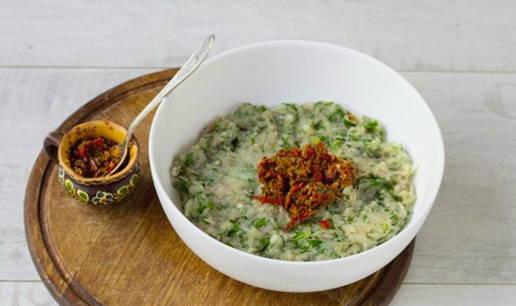 - Meng vervolgens de groentemassa met het gehakt, voeg het ei, zout en kruiden toe.