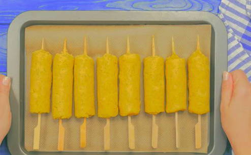 - Vorm lange schnitzels van gehakt en rijg ze op spiesjes. Bedek de bakplaat met folie en vet in met plantaardige olie. Leg de stukjes op een bakplaat.