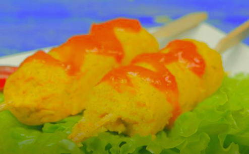 - Fixeer het gehakt op bamboestokken en vorm er langwerpige worstjes van.