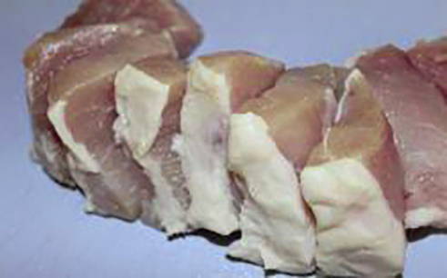 - Hak het kippenvlees heel fijn of hak het in een blender.