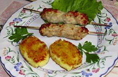 Aardappelgerechten hoeven geen bijgerecht bij het hoofdgerecht te zijn. Voor elke gelegenheid presenteren wij u een licht vegetarische versie van kebab. Dit gerecht kan onafhankelijk worden geserveerd door er groentesalade of zure room-knoflooksaus aan toe te voegen.