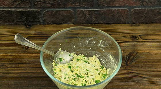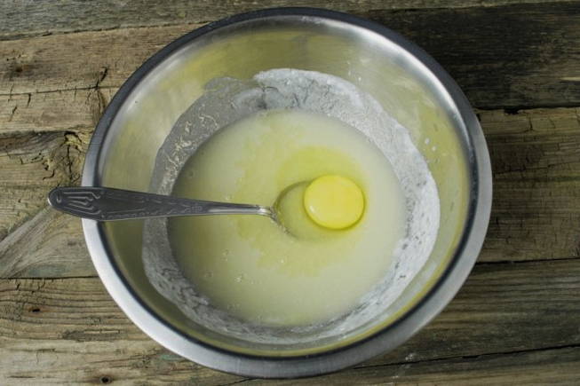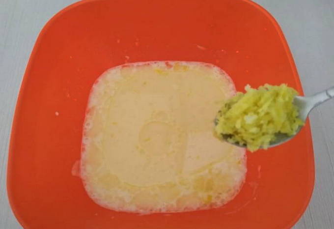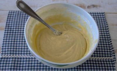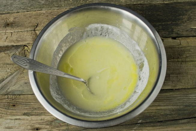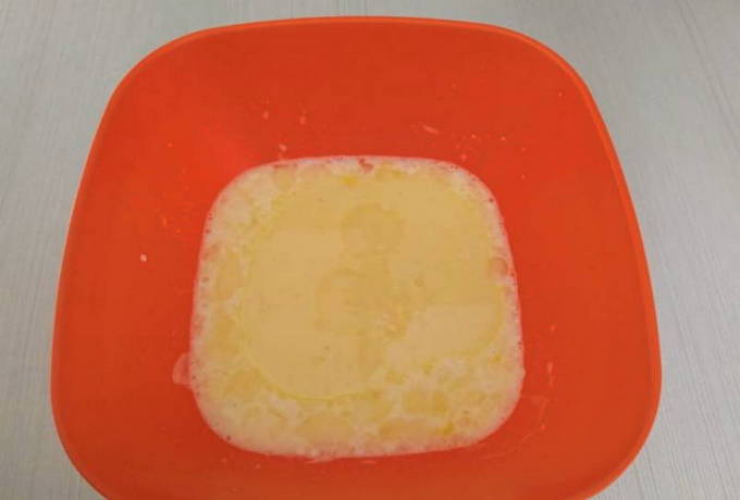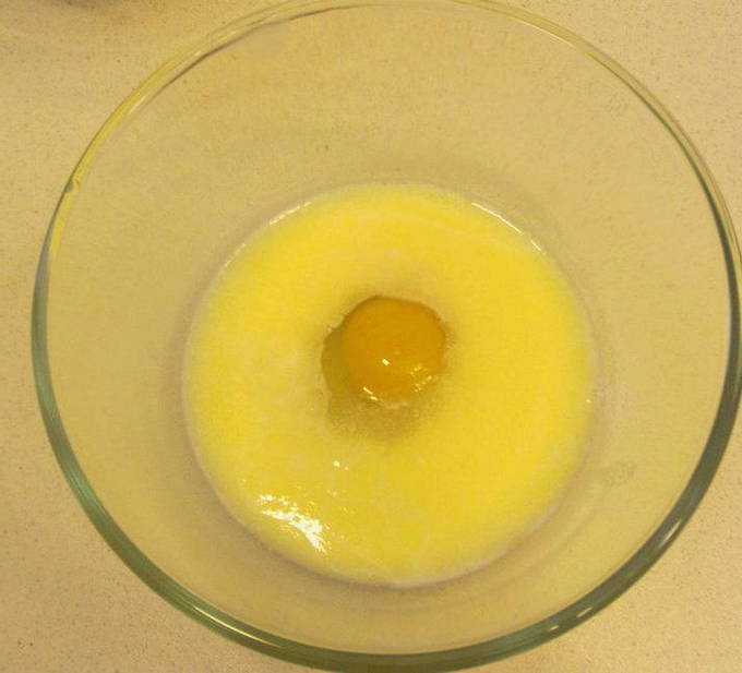 - We vullen het mengsel aan met gesmolten boter. Het wordt aanbevolen om het van tevoren af te koelen, zodat het ei niet gaat krullen.