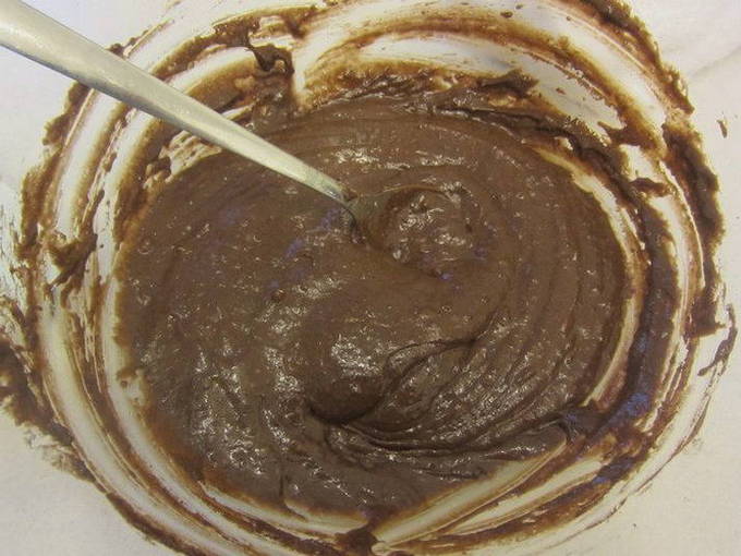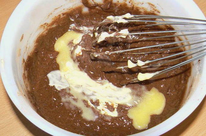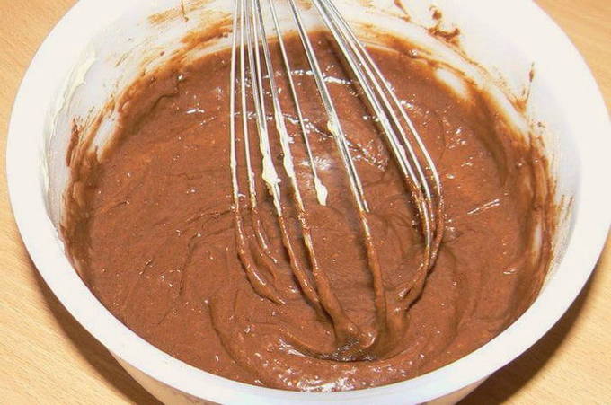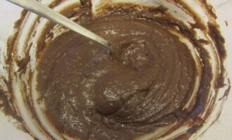 - Roer het chocoladedeeg tot een gladde massa zonder bloemklontjes.