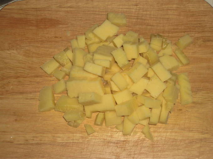 - Snijd de harde kaas in kleine blokjes.